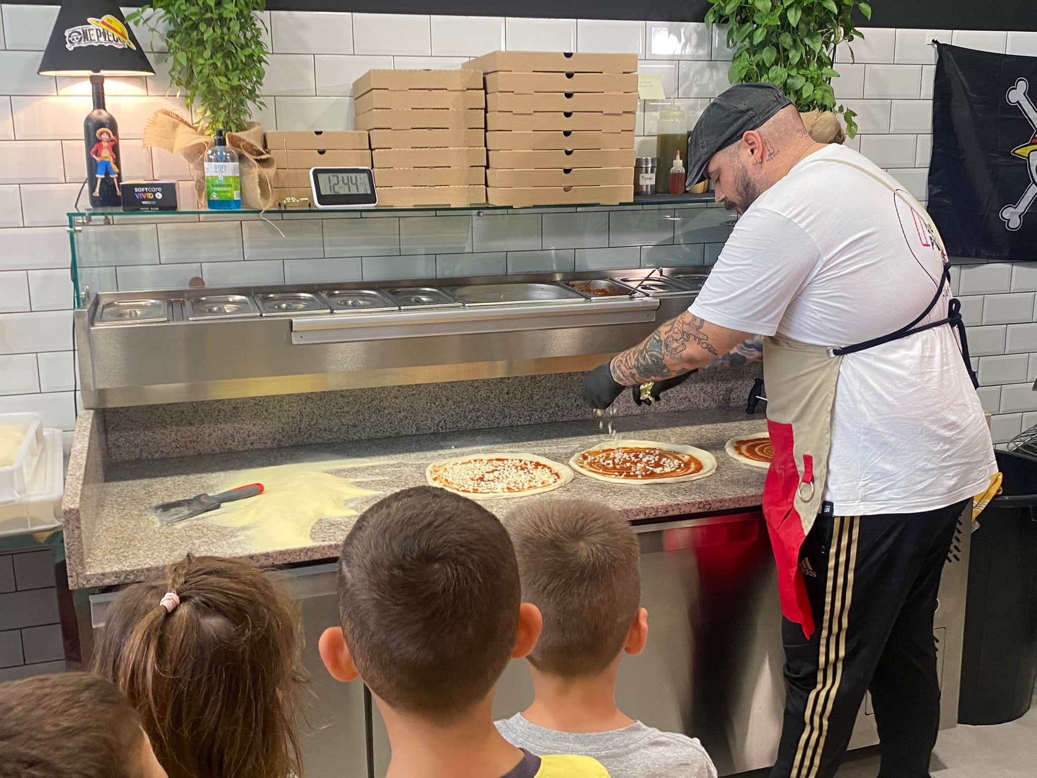 Τα παιδιά έκαναν διάφορες ερωτήσεις, είδαν στους πόσους βαθμούς ψήνεται η πίτσα και για πόση ώρα και τέλος πήραν από ένα μεγάλο κομμάτι πίτσα μαργαρίτα. 🤤