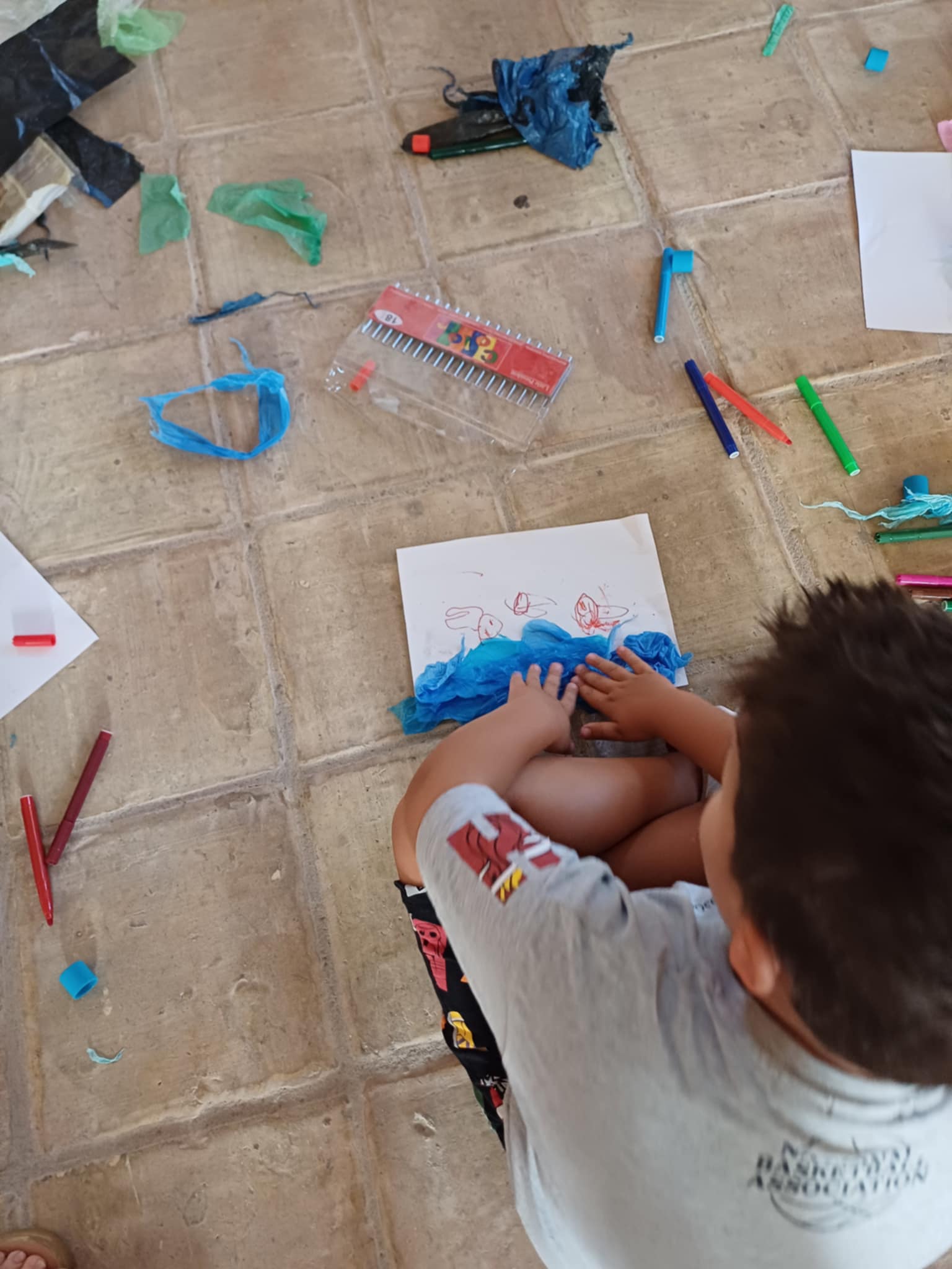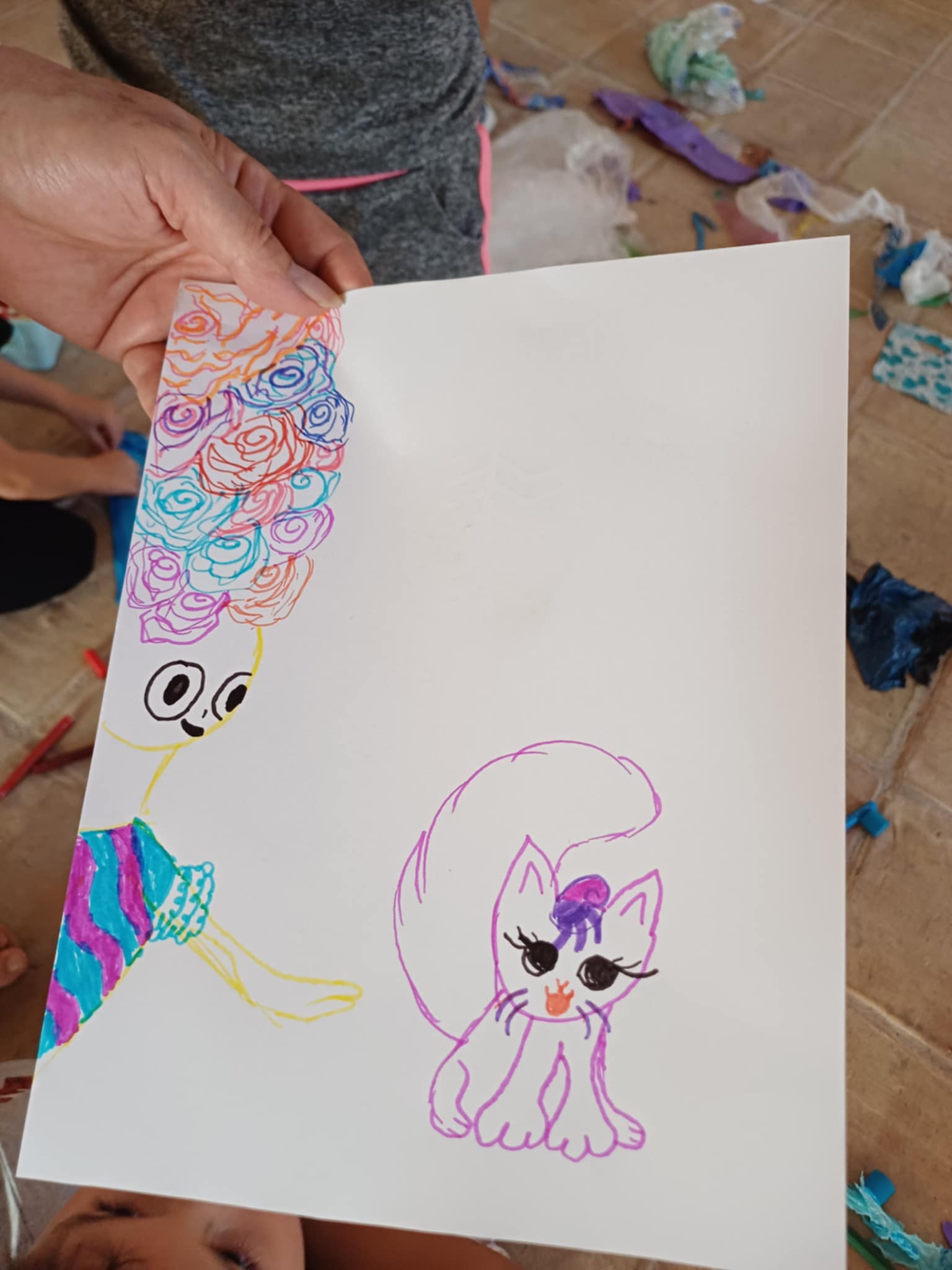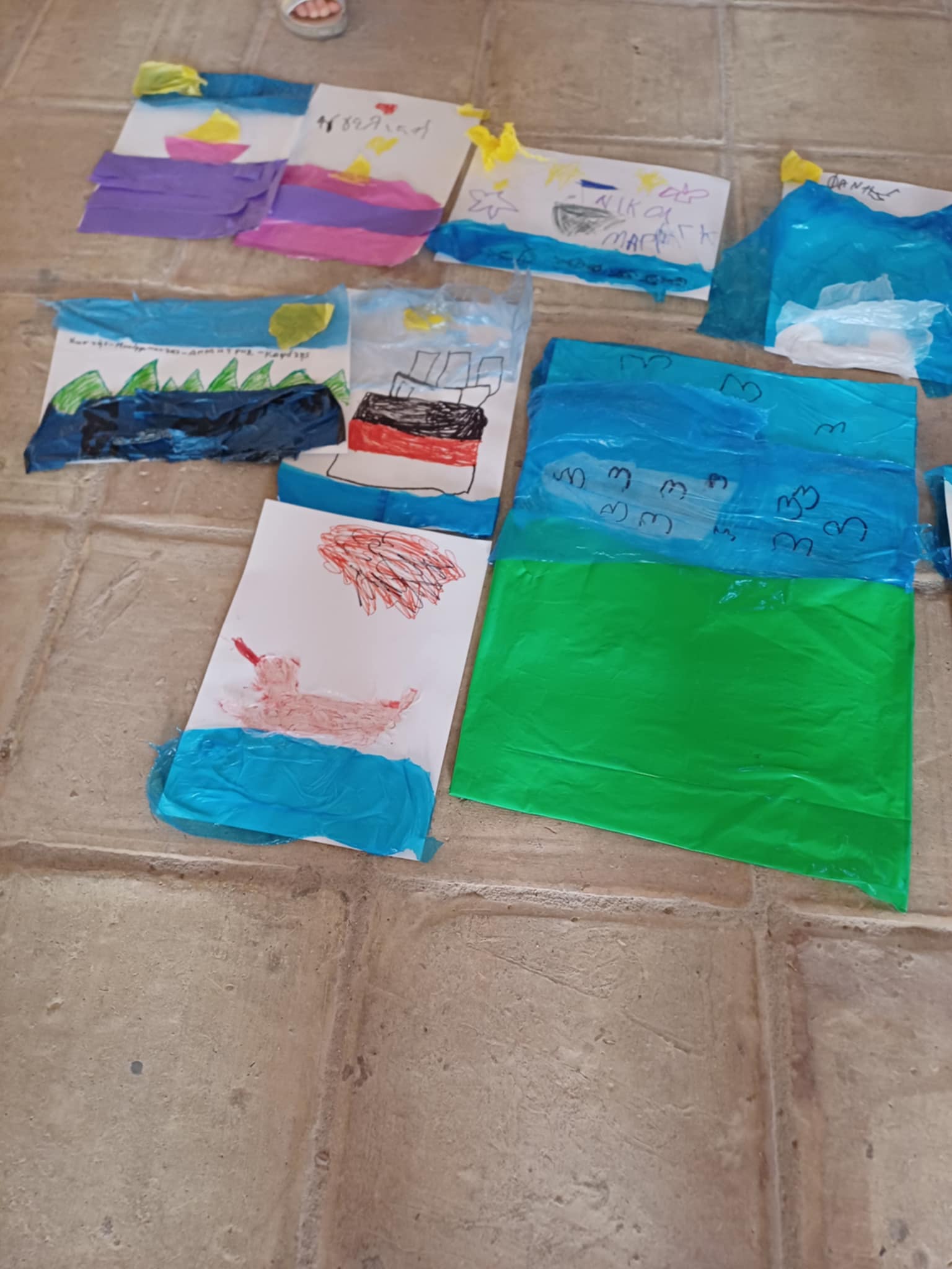 Στο τέλος, δημιούργησαν τα δικά τους έργα με ανακυκλώσιμα υλικά, γεμίζοντας το ΚΔΑΠ με χρώμα