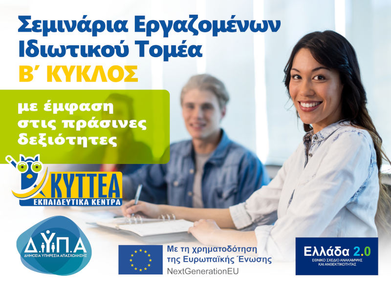Νέο πρόγραμμα εργαζομένων ιδιωτικού τομέα σε κλάδους υψηλής ζήτησης με έμφαση στις πράσινες δεξιότητες (Β' Κύκλος)