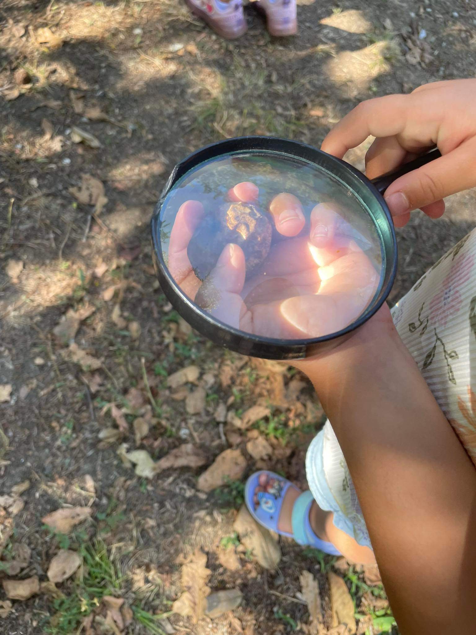 Παρατηρήσαμε φυσικά υλικά που συναντάμε στο δάσος (φτερά, κόκκαλα, κέρατα κ.α.), ακούσαμε ήχους πουλιών και μυρίσαμε φυτά, ανακαλύψαμε φωλιές πουλιών και εντόμων και αποτυπώσαμε ίχνη από πατήματα ζώων σε γύψο! Δουλέψαμε σε ομάδες για να ολοκλήρώσουμε τις αποστολές με επιτυχία και κατακτήσαμε τον έπαινο των μικρών ερευνητών!